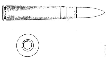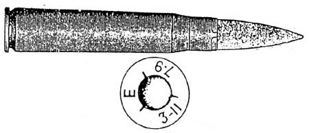 Das Geschossgewicht betrug 9,58 g, der Hülsenmund war magentafarben lackiert. Die Marine produzierte die Geschosse mit einem Tombakmantel und lackierte den Hülsenmund grün.
