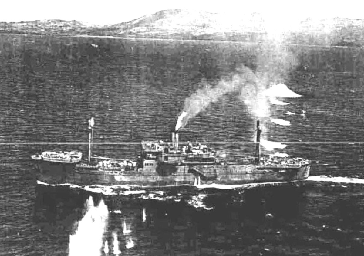 Landungsboot-Mutterschiff Takatsu Maru unter Beschuss