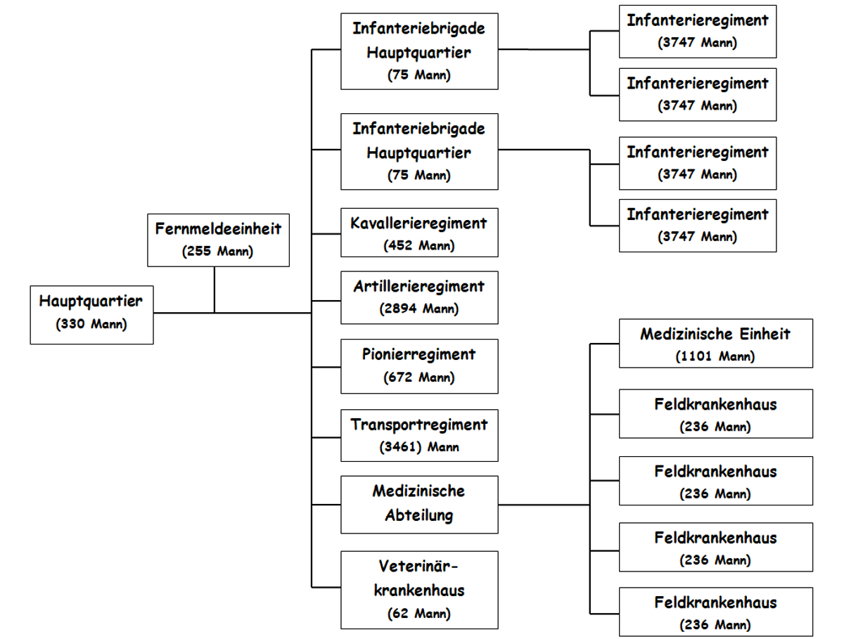 Gefechtsstruktur einer Infanteriedivision (vierzügig):
